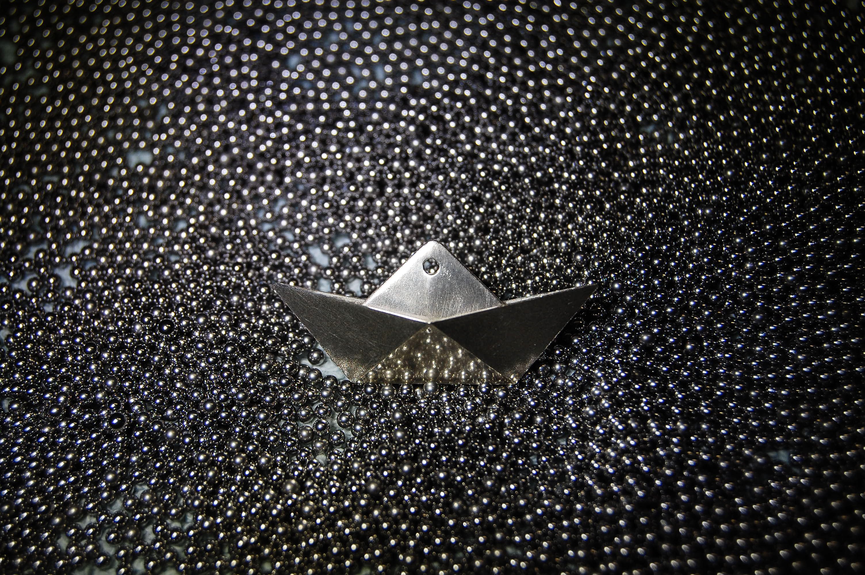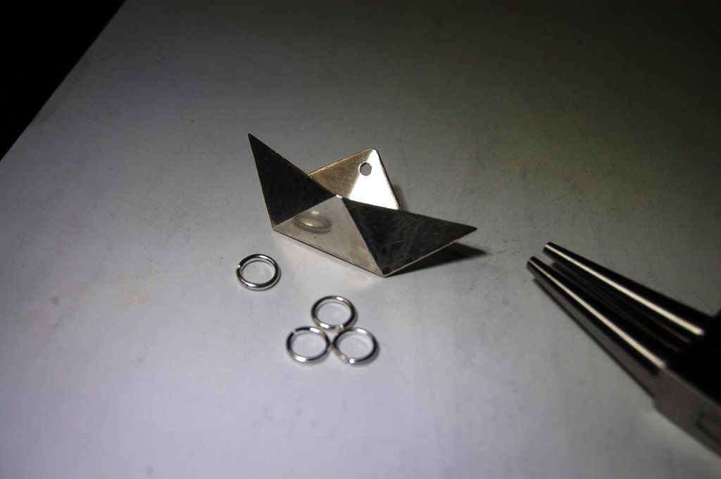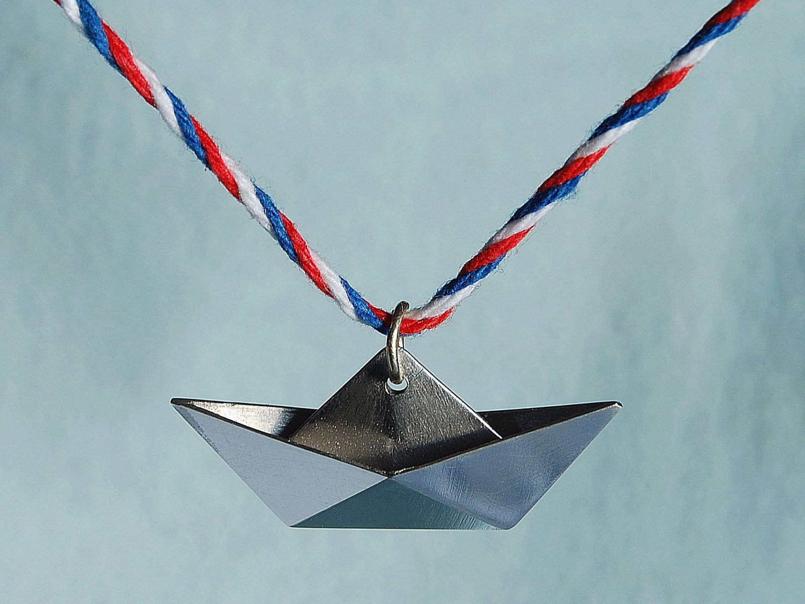 Ručně vyrobený stříbrný přívěšek ve tvaru origami lodičky.