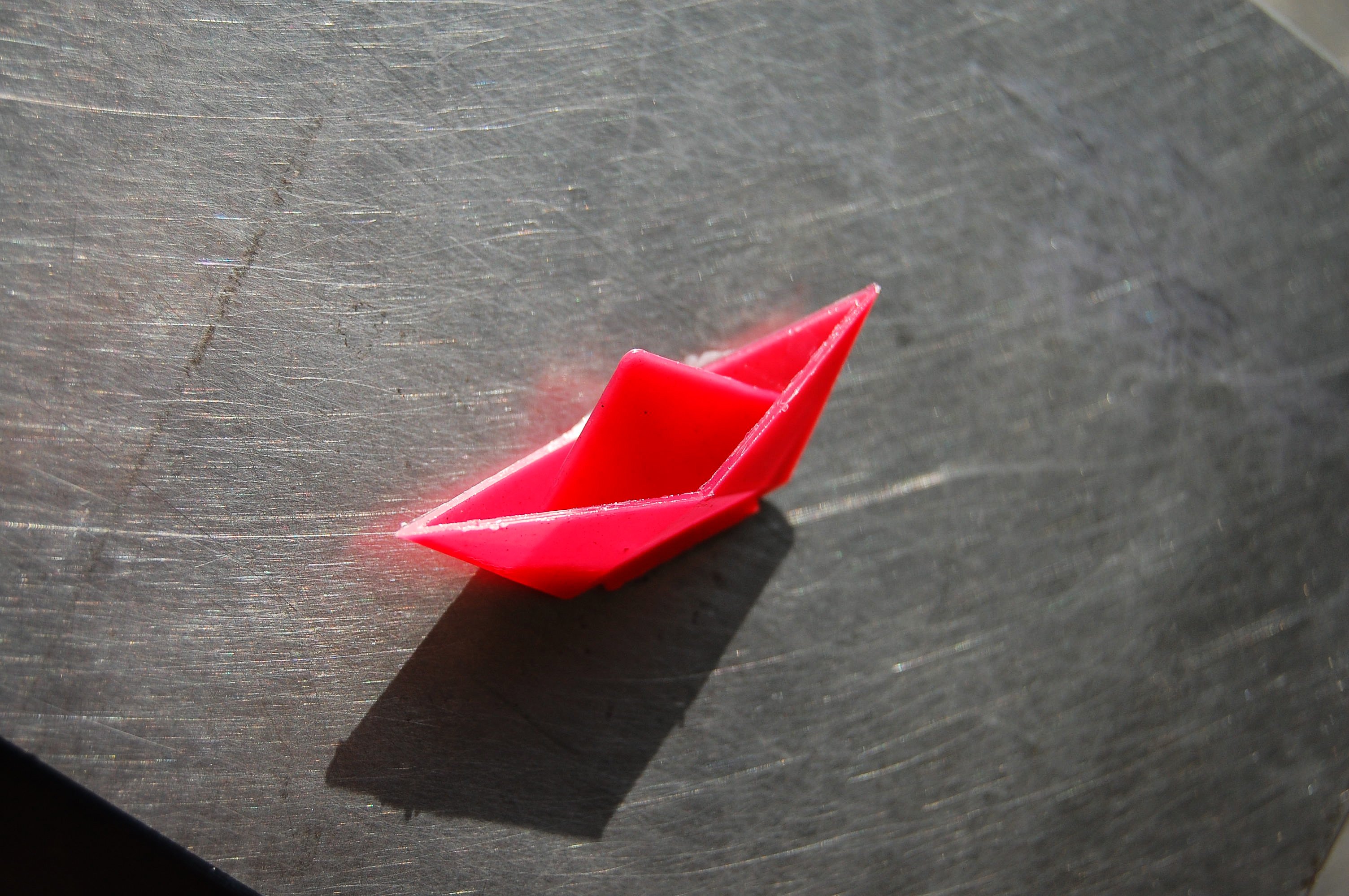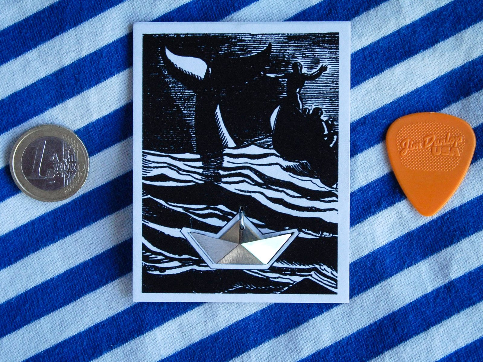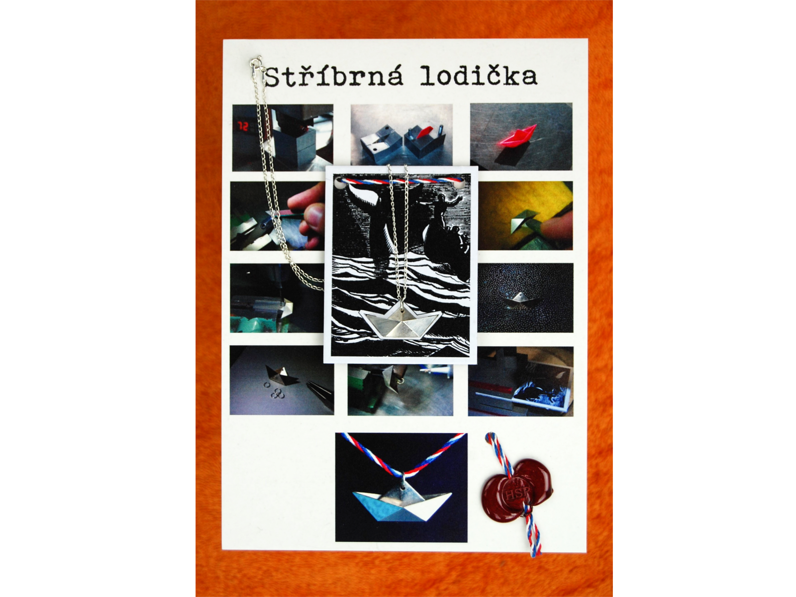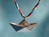 Ručně vyrobený stříbrný přívěšek ve tvaru origami lodičky.